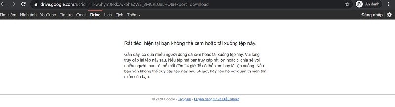 2. Lỗi Google Drive bị giới hạn lượt tải